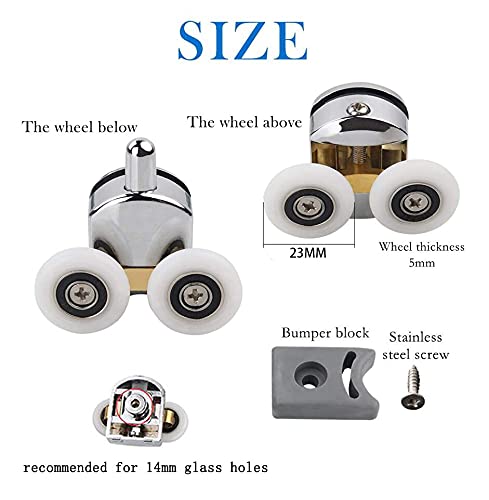 • Package Include: Set of 4 Twin Shower Door Rollers (2pcs top and 2pcs bottom).(recommend for 14mm glass hole, not fit for under 12mm glass hole)