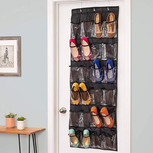 - [Shoe Storage Hanger Takes Up Minimal Space]: This hanging closet organizer doesn't takes up any space, no shoes on the floor and no shoe shelves taking up floor space, over door shoe storage organiser can keep your shoes where they aren't going to end up scattered or piled on top of each other