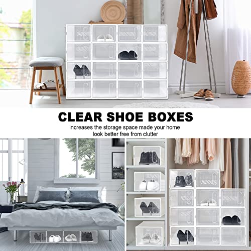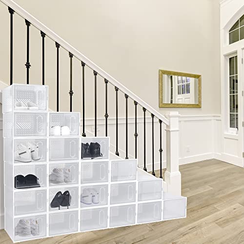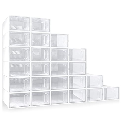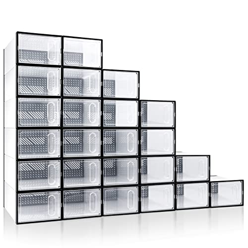 - Value Package: you will get 24 pcs clear plastic shoe boxes with white frame design; Sufficient quantity can meet your daily use and replacement needs; The stackable shoe cabinet is very suitable for the entryway, and it not only stores shoes, but also greatly increases the storage space, making the entryway of your home more tidy