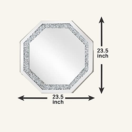 - SIZE:This is a sophisticated modern mirror.This silver class mirror size is 24x24 inch.Thickness 0.8 inch.This wall decorative mirror is a sturdy crystal crushed diamond mirror, definitely sparkly.