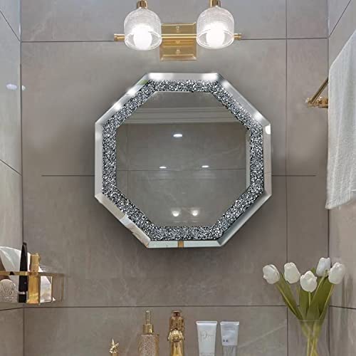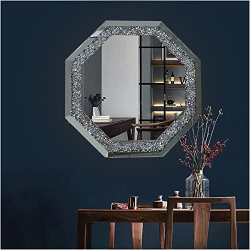 - MATERIAL: This mirror is made of the best silver mirror with sparkle twinkle bling glass crystal crushed diamond . Constructed by the actual rhinestones are presented on it without any cover.This wall mirror is just the right amount of bling without being flashy