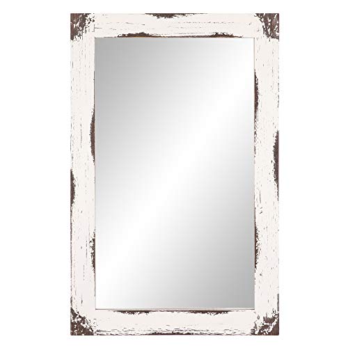 - This rectangular mirror is beautifully framed in a flat wooden plank 2. 75Wide frame finished in a distressed White