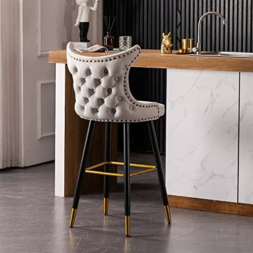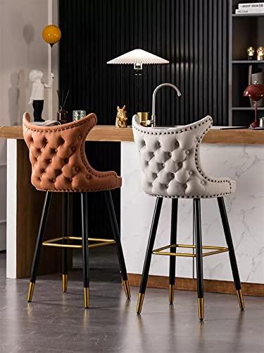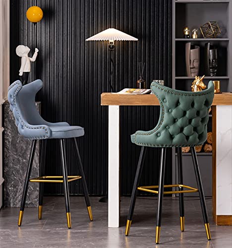 - 【Modern Style】 Bar stool set of 2 is upholstered perfectly accented with gold nailhead and deep tufted. The chair is surrounded by rivets, metal legs with gold tips, a convenient and elegant gold footrest. Ideal for kitchen counter, bars, restaurant, company, pubs and cafe etc.