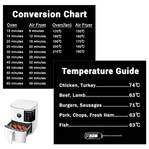 - Size: air fryer cooking time sticker size is 10.5cm x 9.5cm.