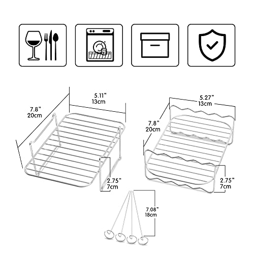 - ✔【Widely Applicable】This air fryer rack can be used with grill and skewers, which can help you make kebabs, steaks, vegetables, fruits, pizza, barbecue, etc.