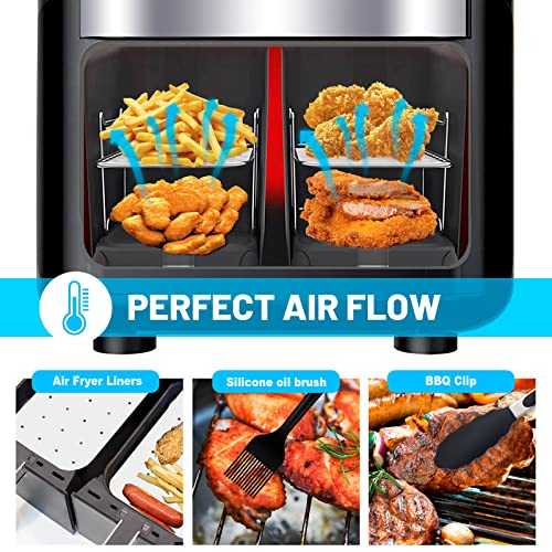 - 🍕【Food Grade Material】: The cooking accessories for dual basket air fryers are made of food grade materials. Air fryer racks are constructed of durable, sturdy food grade 304 stainless steel while following strict quality control guidelines and are free of BPA or harmful materials. They are made to handle high temperatures and provide long term use.