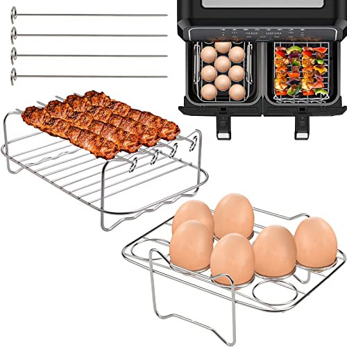 - 🥘【Compatible with Fryers Air Fryers】: The air fryer stand is compatible with the dual zone air fryer AF300UK/AF400UK and other dual zone air fryers. They can be given more functions when making food. The stainless steel skewers provided is suitable for AG301UK, AG551UK, AG651UK, SP101UK, DT200UK! Our air frying multi-layer rack accessories are suitable for use with most 7.6L - 9.5L dual basket air fryers.