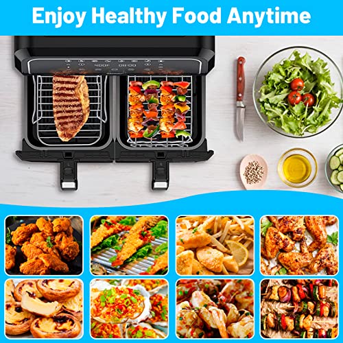 - 🍤 【Easy to Clean and Use】The dual-zone air fryer rack accessories can be cleaned in the dishwasher, so you don’t have to worry about cleaning after use while cooking delicious food. It is very convenient to clean after daily use. The corners of the air fryer rack are rounded and smooth, so you don't have to worry about scratching your hands when using it, and it can be used safely.