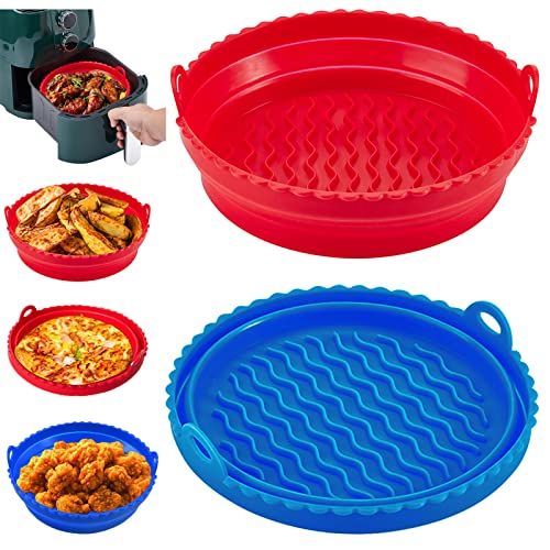 - [Practical Cooking Tools]- the air fryer basket is kitchen necessary accessories, suitable for air fryer, steamer, oven, instant pot and microwave, etc. you will receive 2 pieces of collapsible air fryer silicone pot (red+blue), which meet your daily usages and replacements. 7.5-inch fits 3 to 5 QT Air Fryers, 8.5inch (5 QT or Bigger).
