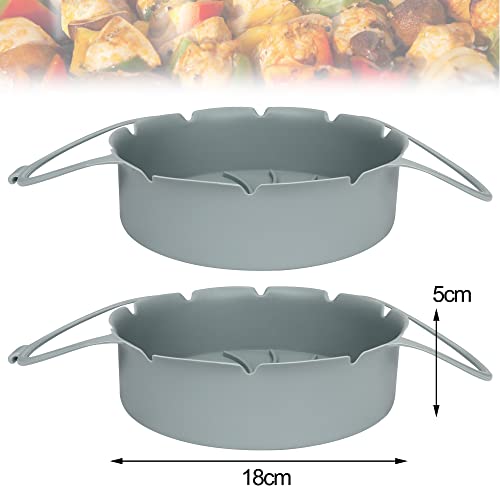- 🍔 Universal Silicone Air Fryer Liner: 2-pack, size 18x5cm/7x2", made of high quality food grade silicone material, non-stick, non-toxic, not easy to deform, perfect for all 3 to 5 QT or larger air fryers, also Can be used in oven, microwave or pressure cooker