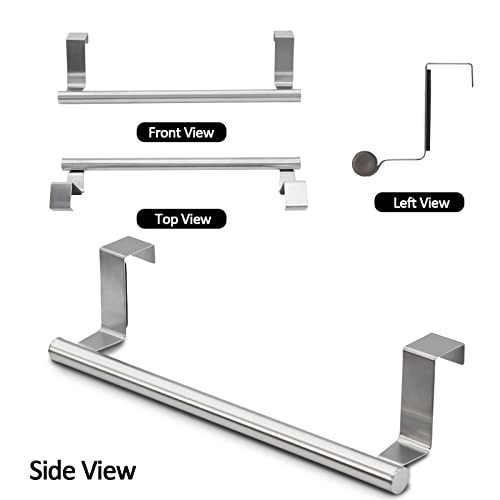 - [Thoughtful Sized]Each hang over kitchen towel rack measures 9.21” x 1.81” x 2.44” / 23.4cm x 4.6cm x 6.2cm (L x W x H) which is suitable for most cabinet doors up to 0.94” / 2.4cm thick. The distance between the crossbar and the cupboard door is 0.87" /2.2 cm, so your towels will not touch the cabinet door.