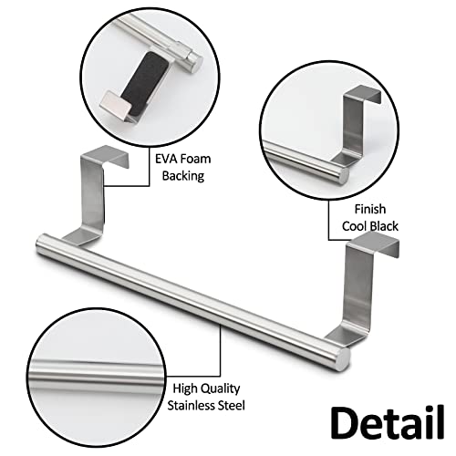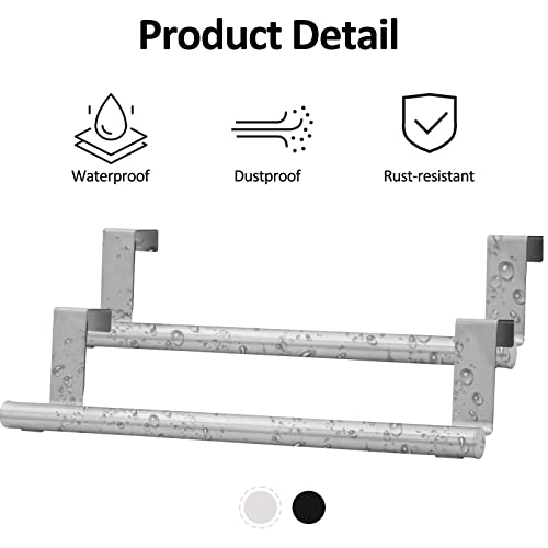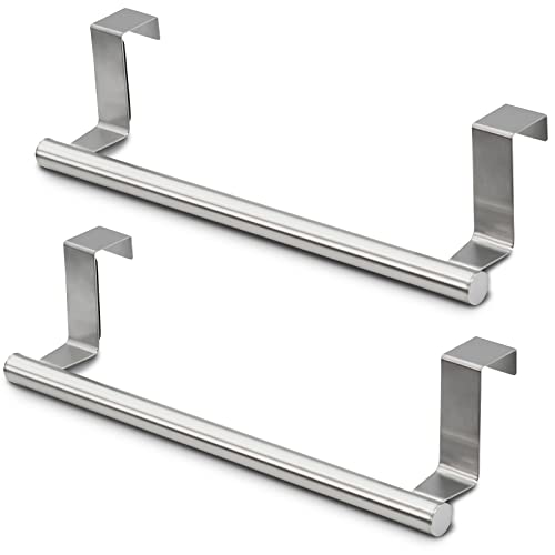 - [Premium Metal & Rust-resistant & Classic Color]The towel holders are made of quality stainless steel. These Gorgeous 2 pieces over door towel racks go well with any decor. The silver kitchen towel holders have durable rust-resistant finish and resist smudges.