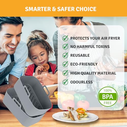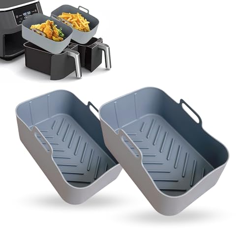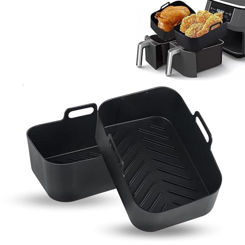 2PCS Silicone Air Fryer Liner Basket for Ninja Foodi Dual AF300UK, AF400UK, Tower T17088, Vortex Salter and Other Double Zone Airfryers, Reusable