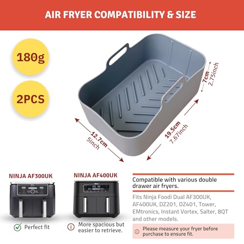Home Small Appliances 2PCS Silicone Air Fryer Liner Basket for Ninja Foodi Dual AF300UK, AF400UK, Tower T17088, Vortex Salter and Other Double Zone Airfryers, Reusable