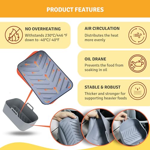 • 🧼 EFFORTLESS CLEANING: Say goodbye to food sticking to your air fryer. Our silicone liners make post-cooking cleanup a BREEZE. Simply turn inside out, wash with warm water and soap, or use the dishwasher.