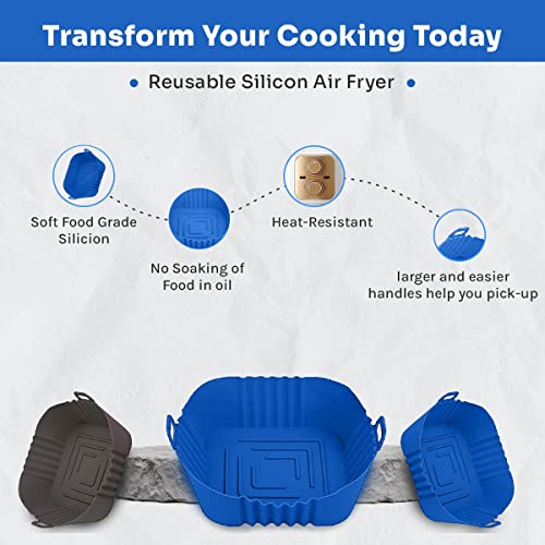 - Practical design: Our air fryer silicone liners reusable are designed with soft silicone wavy lines that improve heat distribution and air circulation.Our air fryer liners square is designed with intimate handles on both sides to protect your hands from burns when removing the silicone pot.
