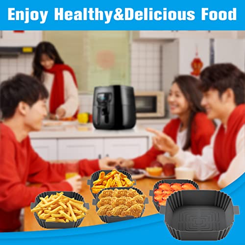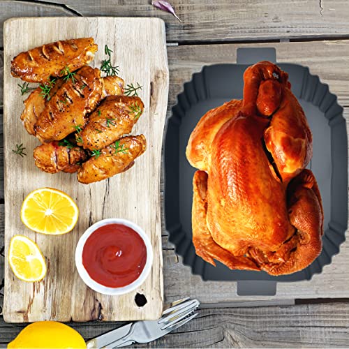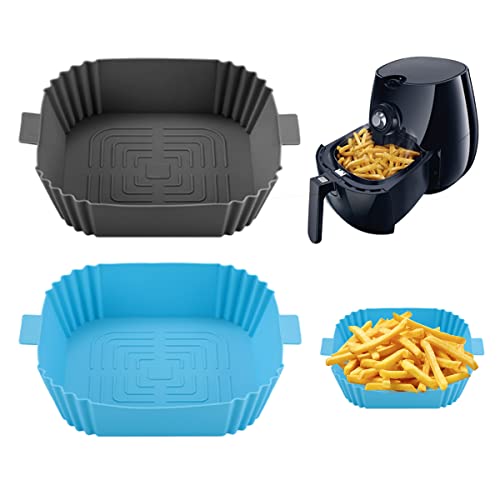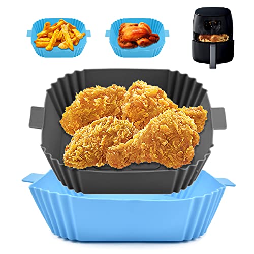 - [Durable Material] -- 2Pcs air fryer liners , high quality thickened silicone material, scratch, abrasion, tear and dirt resistant. Withstands temperatures up to 428 degrees Fahrenheit and -40 degrees Fahrenheit. Will not deform, air fryer silicone pan will not affect the taste of food.