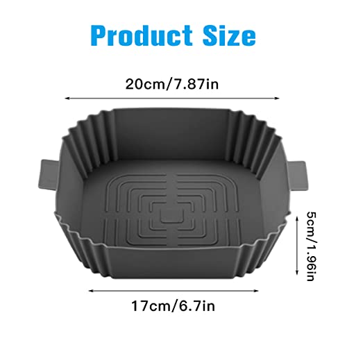 - [Safe and Reusable] -- Air fryer silicone liner is made of food safe grade silicone, non-stick, odorless, non-toxic and BPA free.Size:7.8 x 6.7 x 2 inches. Suitable for 3.8L-5L air fryers, measure your inserts for air fryer baskets before ordering.