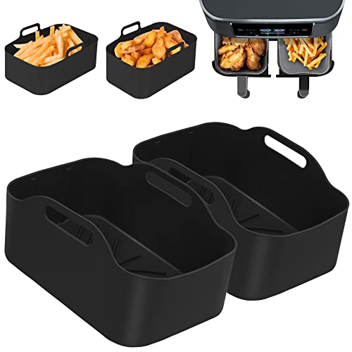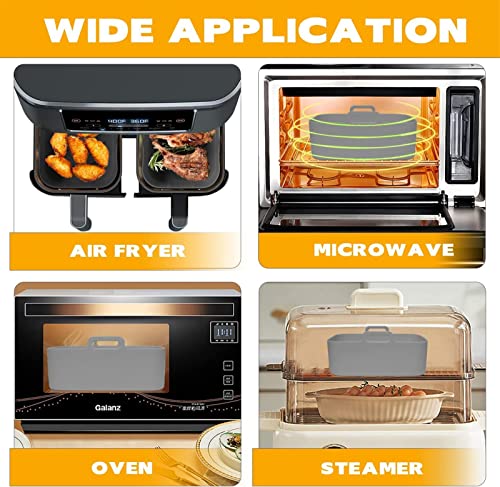 2PCS Silicone Pot for Ninjas Dual Air Fryer Liners, Double Air Fryer Silicone Air Fryer Basket, Air Fryer Rack Accessories for Air Fryer, Oven, a