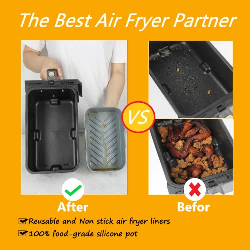 • 🍔【Heat Resistant & Food-Safe】uses premium, BPA free, food-grade silicone that can handle up to 450°F/230°C for air frying, steaming, and oven baking. Our air fryer silicone liner is reusable, will not deform or damage after hundreds of uses, it is the most valuable air fryer accessory. Dimensions 19.5*12.7*7cm/7.67*5*2.75 inches.