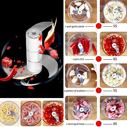 - [High quality material] The electric mini garlic chopper is made of high quality ABS, PP and PC materials. It can hold food safely and is harmless to you and your family. Robust built-in stainless steel sharp blade, with a 45-degree angle design, high temperature resistance and corrosion resistance.