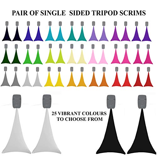• MODERN AND SLEEK DESIGN. large choice of 25 colors to choose from to match your colour theme and decoration .Tight fit design spandex single sided scrims for speakers tripods (stretches from 4ft / 120cm to 6ft / 180cm ) . great affordable event prop for your DJ set . Sold by pair ; you will receive 2 scrims