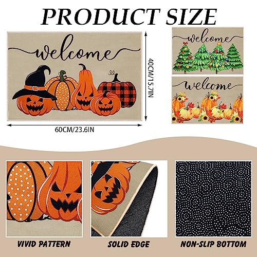 • Available 3 Styles: what you will receive are 3 pieces of door mat in 3 different themes, including a Halloween doormat, a Christmas doormat and a Thanksgiving doormat; Enough quantities and diverse types to meet your use and replacement needs in daily life and various holidays