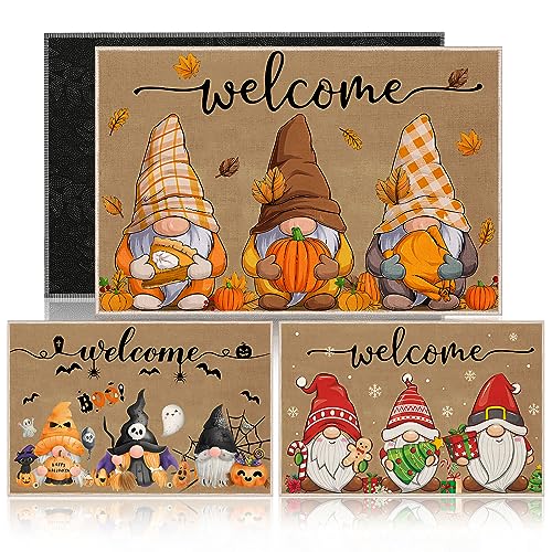 3 Pcs Halloween Gnome Welcome Mats Christmas Doormat Thanksgiving Gnome Welcome Door Mats Decorative Gnome Mat Entrance Mat Non Slip Washable Ind