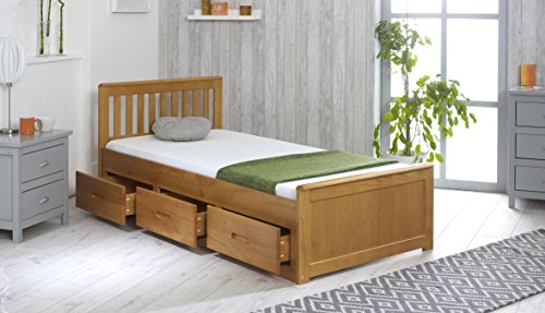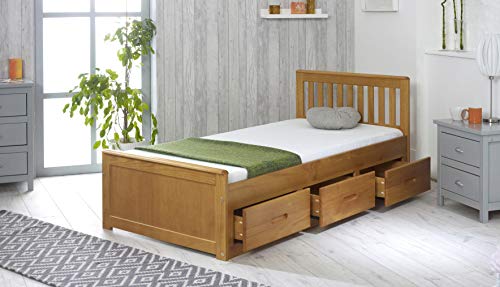3'0 Single Mission Storage Bed in Honey with 3 Drawer Storage