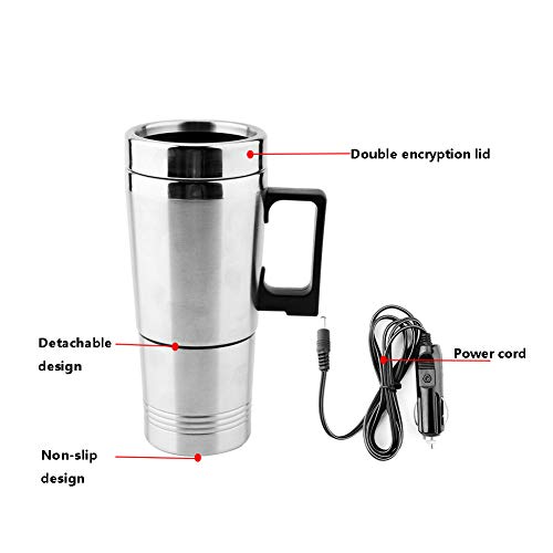 - 【Food-grade Material & Sealing Cap】: Car mug heater is made of food-grade 304 stainless steel and PP material, it is safe to drink boiling water. The sealed kettle cap is made of high-quality silicone, safe and non-toxic, good sealing performance can keep the water temperature and ensure that the beverage will not overflow .