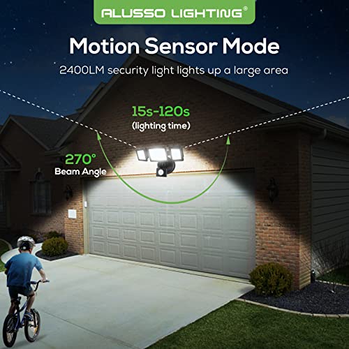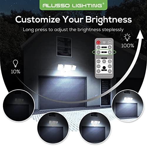 - 【30W Brightness and Dimmable】The led flood light outdoor motion sensor with output 30W, 2400 Lumens.This energy saving outdoor security light can adjust the brightness of the light through the remote control, segmented adjustment (short press) or stepless adjustment (long press).