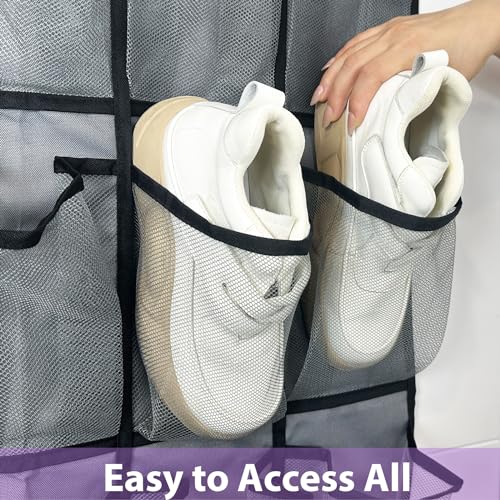 - 👟【Sturdy Washable Oxford Fabric】: The material that this over the door shoe organizer adopted is premium 600D oxford fabric, which is washable, tear-resistant and much more sturdy than those shoe storage organizers made of cheap non-woven and plastic. Each of our shoe rack for door can hold up to 40 pounds, you can always use with confidence.