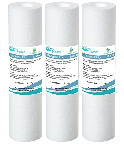 - 3x AquaHouse AH-SED101 10" 1 micron Sediment water filter cartridge, compatible with all standard sized 10" water filter housings (cartridge diameter 2.5"). Suitable for use with drinking water, reverse osmosis systems, aquarium filters, water fed pole systems, and more.