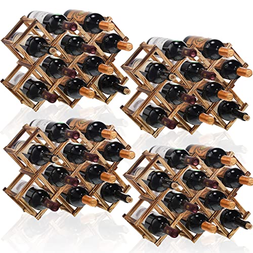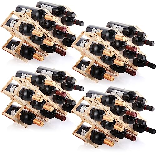 4 Pack 10 Bottles Wooden Wine Rack, Freestanding Wine Rack Foldable Countertop Wine Rack Display Shelf Countertop Wine Bottle Holder Wine Shelves