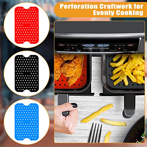 - 【🥘4 Pack Reusable Silicone Air Fryer Liners】Each pack comes with 4 silicone liners(red, black, blue, grey) to provide you with a simple, quick, and convenient way to make delicious meals, are washable and reusable so you can use them every day with peace of mind.