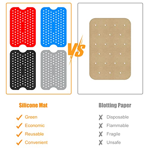 - Premium Quality 100% Food Grade Silicone: Made from high-quality silicone and offers high heat resistance (450 °F/230 °C). These Non-Stick air fryer accessories are designed to parchment paper alternatives. Rest assured that durable and not easy to deform, and no deformation for long-term use.