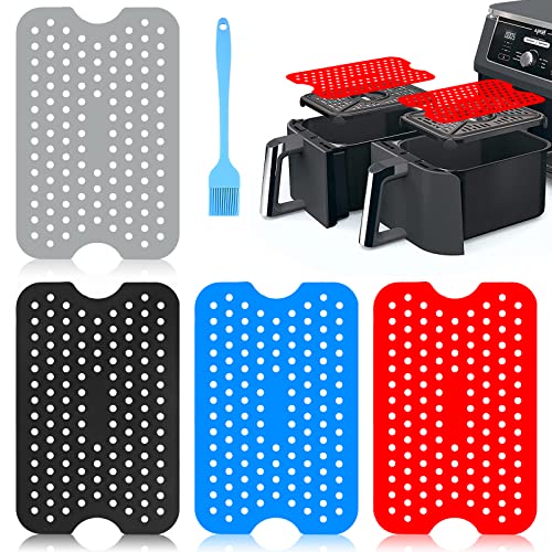 - 4 Pack Reusable Silicone Air Fryer Liners: Each pack comes with 4 silicone liners (red, black, blue, gray) and 1 silicone oil brush to provide you with a simple, quick, and convenient way to make delicious meals, washable and reusable, so you can use them every day with peace of mind.