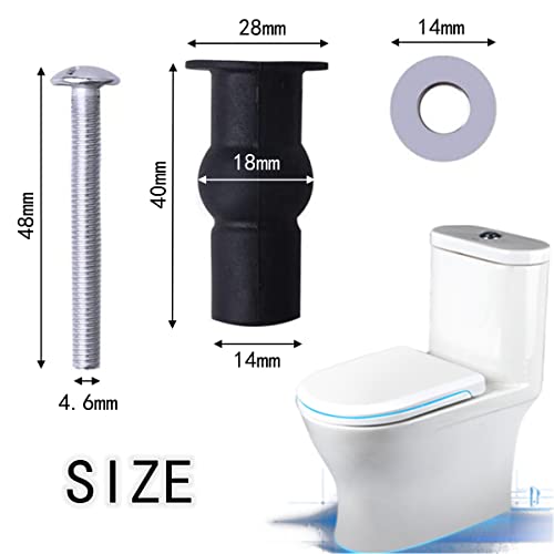- ☞ Size Information: Expansion ball diameter: Approx. 1.8 cm/ 0.7 inch (unexpanded state). Rubber sleeve length: Approx. 4 cm/ 1.57 inch. Metal screws: 4.8 cm/1.89 inch. Metal screw diameter: 0.46 cm/ 0.18 inch. Metal washer diameter: 1.4 cm/ 0.55 inch. Suitable for 14 - 16 mm hole for toilet seats.