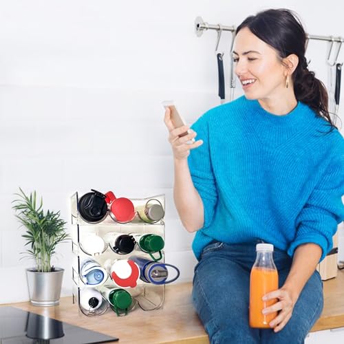 - Water Bottle Storage Organization: Each level of this stackable water bottle holder can accommodate up to three water bottles. Assist you in saving space while maintaining your fridge, pantry,&Â kitchen clean.Â