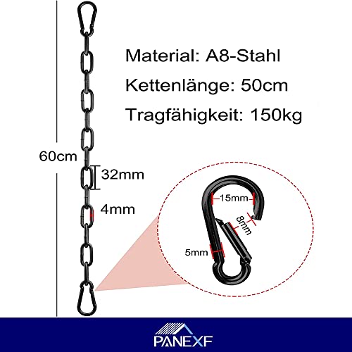 - DIMENSIONS OF HANGING CHAIR ATTACHMENT - 4 pieces OF 50cm punch bag chain + 8 pieces OF M5 Carabiner. Quick installation without additional tools.