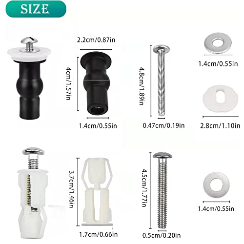 • ☑️The detail size of each toilet seat expanding nuts is on the picture , please measure before buying to make sure your toilet seat work well .The rubber bungs slide into the holes perfect and when you tighten the bolts they squash up in the holes making a good tight fit.