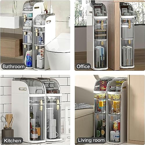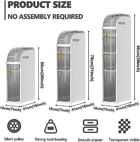 4 Tier Bathroom Floor Storage Cabinet 7in Narrow Tall Slim Bathroom Storage Tower with Clear Drawers and Casters Side Storage Organizer Cabinet f