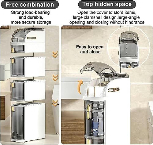 • 【Adequate storage space】Multi layered drawers and top flip-open cover design allow you to organize different items.Each drawer can be classified to store different bathroom items,such as towels and tall bottles of shampoo.The top features a large flip design for easy access to items,and there is a tissue opening on the side.The compact footprint makes it an excellent storage cabinet