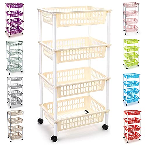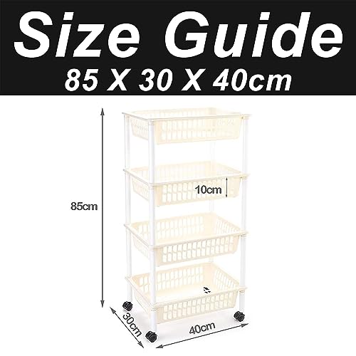 - Large Capacity & Flexible - The 4-tier storage trolley cart is ideal for making the most of limited space at home. This movable storage cart is perfect for storing items in your closet, bathroom, garage, laundry room, workplace, dorm, libraries, or in the space between your washer and dryer. Storage and transportation are simple.