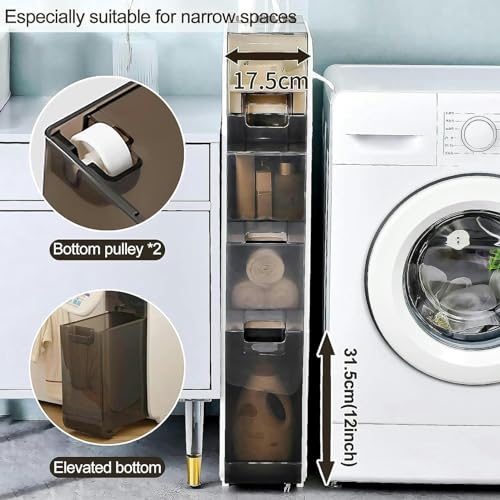 - 【Upgraded Material】Different from the fragile MDF toilet paper storage cabinet,our narrow bathroom floor cabinet is made of high-quality PP material,with hard see-through drawers,allowing you to easily identify items in daily use,and there will be no Rust and damp worries,ensure long-term use
