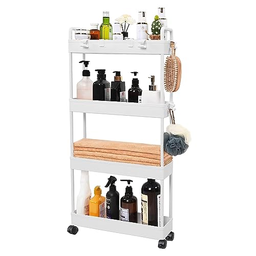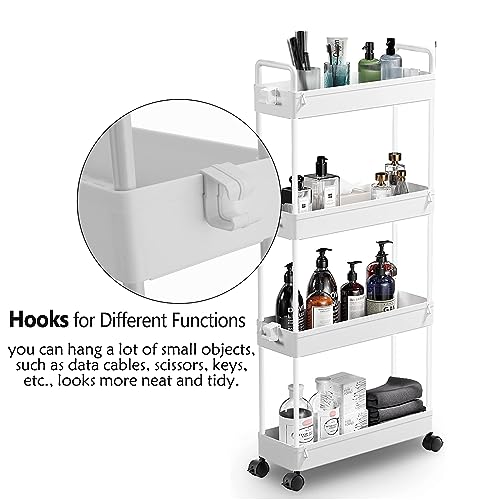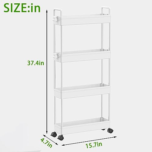 4 Tier Slim Rolling Storage Cart,Multifunction Utility Cart Kitchen Storage Organizer,Narrow Storage Cabinet Mobile Shelving Unit for Bathroom,Ki