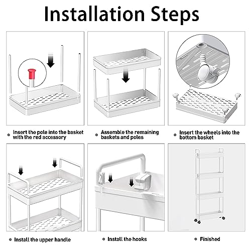• ♨️【EASY INSTALLATION】--Mobile shelving unit organizer can be quickly installed and used without additional tools, just follow the steps in the instructions and snap each individual unit together in order,the assembly can be completed quickly.