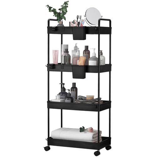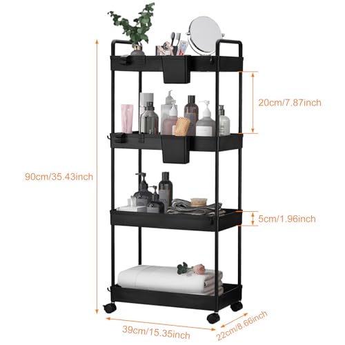 - Durable and stable: the storage car is made of high-grade plastic and PVC rods. It helps to optimise space utilization as much as possible. The mesh basket is an ideal choice for easy washing and cleaning.