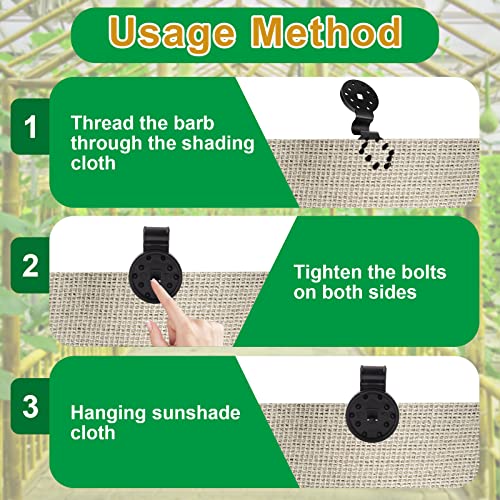 • 【Widely Use】The greenhouse film sunshade net clips are suitable for different kinds of fabric with mesh, sunshade net and heat insulation net, including the sunshade sail, bird proof net, garden net and agricultural net, which can not only protect the plants from sun and birds, but also provide a cool and safe environment for you to relax in the garden.