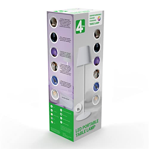 - USB Rechargeable. Simply charge it up and move anywhere around the home. Enjoy up to 12 hours use between charges* (* gives up to 4-6 hours continuous use on a single charge on warm white and up to 12 hours on RGB when optimally charged using the USB cable provided.)